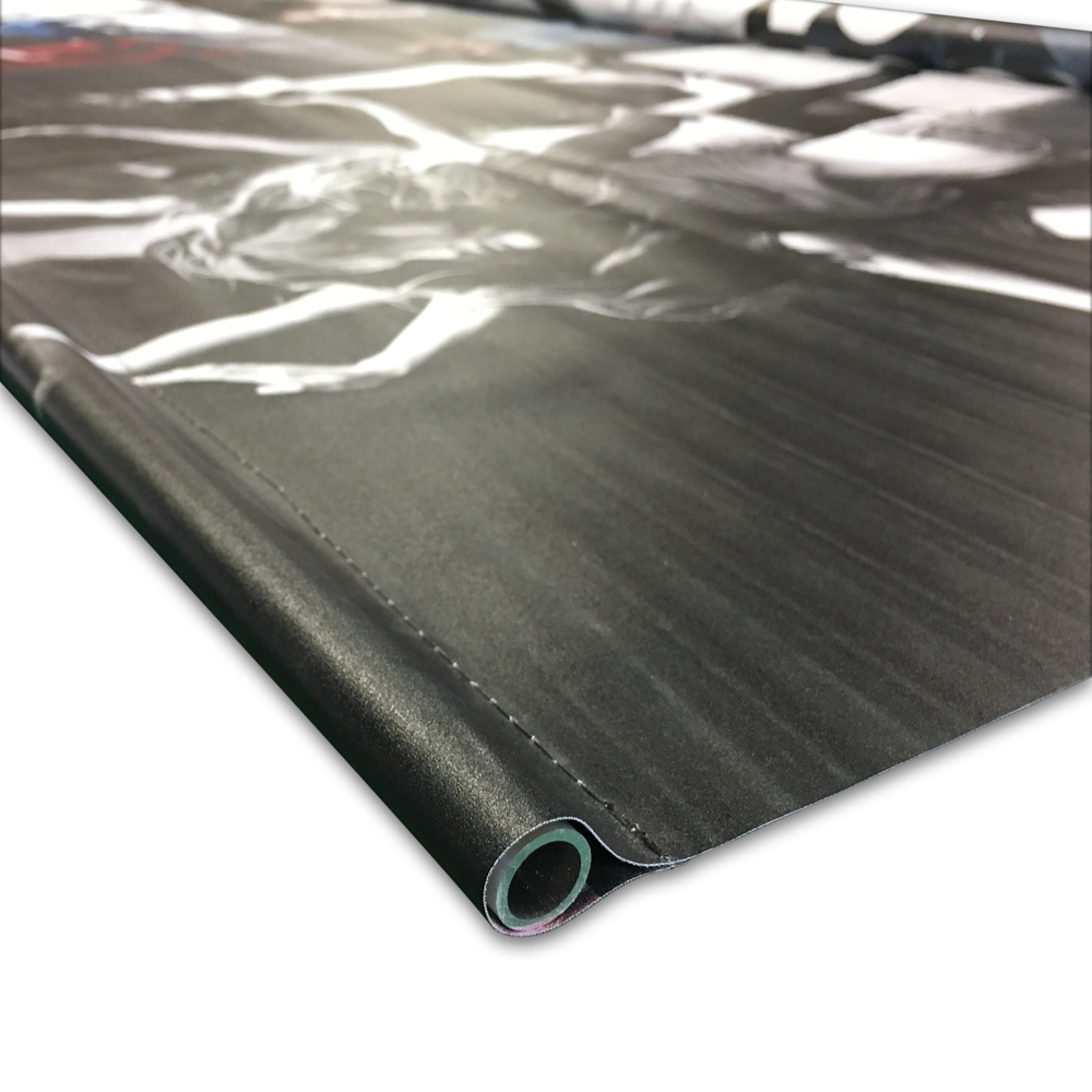 Aluminiumsrør til banner bruges til at ophænge stofmessevægge. Før røret ind i den syede kanal på banneret. Køb røret af os med hurtig levering. Anvendelsen af aluminiumsrør som bannerholdere er en enkel løsning til at hænge stofbilleder op på væggen. Bestil med fordel et rør, der er et par centimeter længere end banneret, så det stikker et par centimeter ud. Nederst i banneret kan røret være en centimeter kortere, så det ikke er synligt og fungerer som vægt, så messebilledet hænger lige og glat.