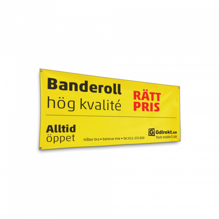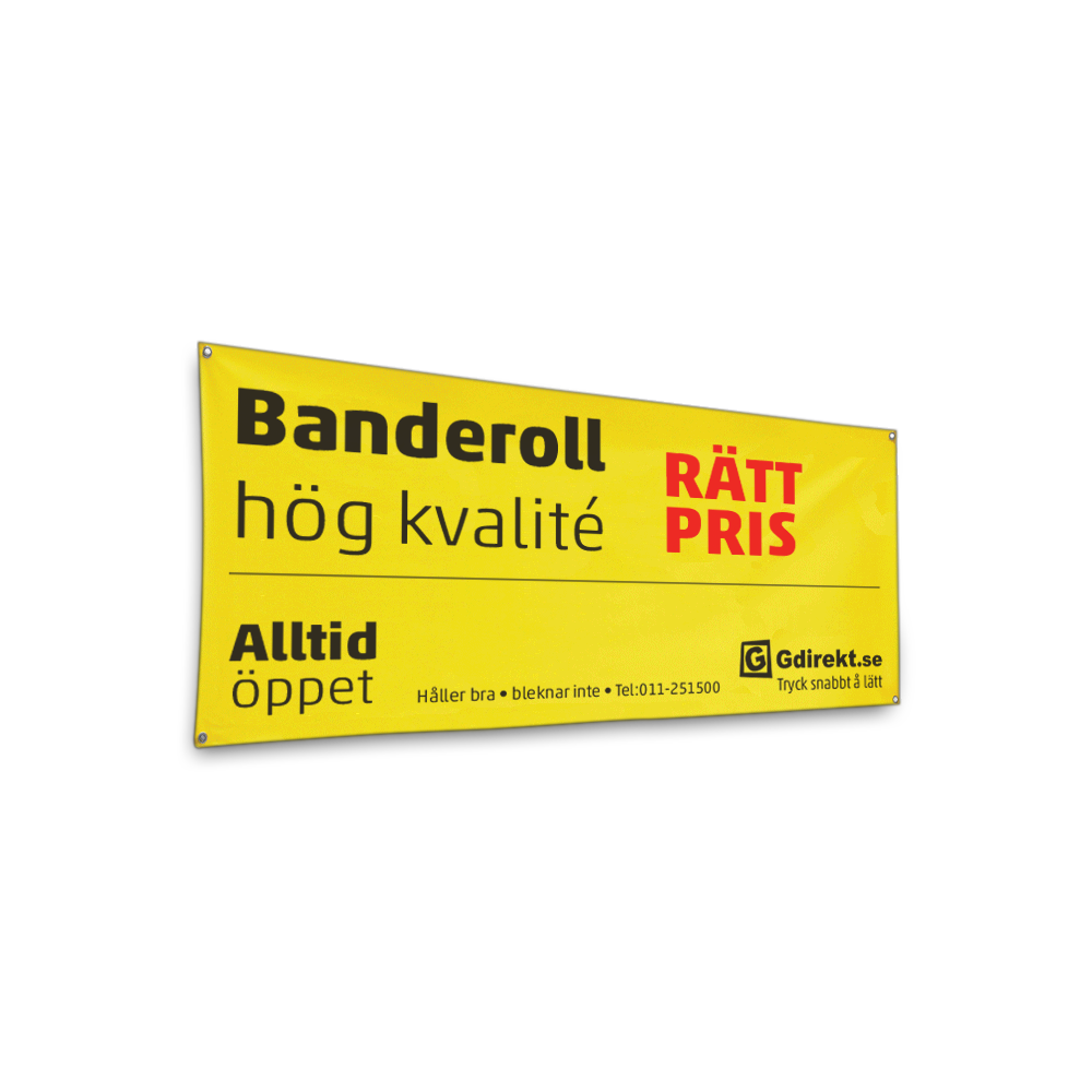 Vi efterbehandler bannerne med snørehuller eller syr løbegange til rundstave. Og skal der ekstra forstærkning til, syr vi det på. Er det specialløsninger på bannerne til en event, ringer I bare til os på +46 (0)11-251515. Kort og godt, man bestiller bannere online på Gdirekt! Når I køber bannere billigt hos os på nettet, får I det banner, som holder den bedste kvalitet.
