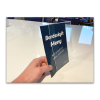 Bordskilt Menu til dine egne udskrifter i papir. Størrelsen er A5, 148x210mm. Placer nemt dine trykte løbesedler, informationsark eller menuer i displayet som fremstillet i holdbart gennemsigtig plast. En beskyttende plast er inkluderet i priset.