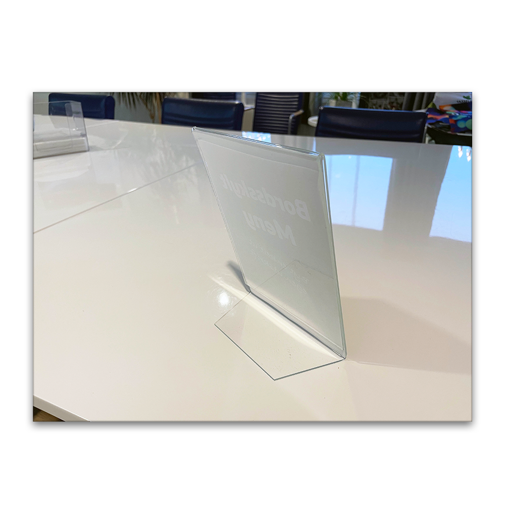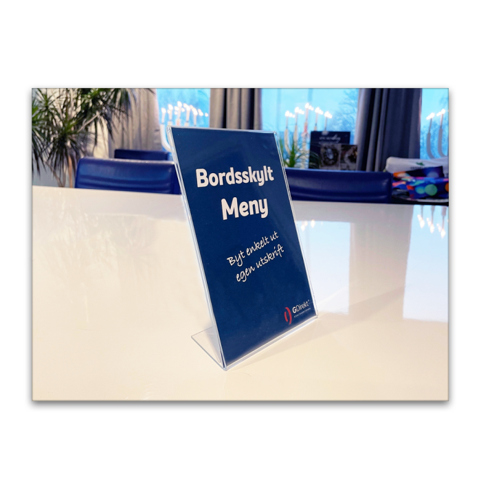 Bordskilt Menu er primært til dine egne udskrifter i papir. Perfekt til menuer, prisplader og anden information. Disse udstillingsstander bruges i restauranter, butikker, messer og også i receptioner. Skiltholderen er lavet af meget holdbar gennemsigtig plast. På grund af dette fremhæver budskabet på den bedste måde. De bruges til at vise ensidige beskeder. Derefter er disse bordsstativer udstyret med en beskyttende plast, så de forbliver dejlige længere.