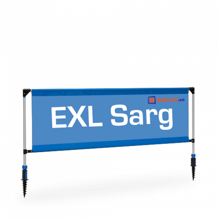 EXL Banner Sarg er en udendørsstander, der fås i to størrelser: 240 x 80 cm og 290 x 80 cm. Det er et stabilt bannerstativ til sportskonkurrencer, messer og events. Dobbeltsidet eller enkeltsidet banner, jordskruer og taske er inkluderet i prisen. Køb fødder til plant underlag som ekstraudstyr, afhængigt af om det skal bruges indendørs eller udendørs. Denne stander til bannere er let at bruge Selve rørene er meget robuste og fremstillet af glasfiber. De er fremstillet i flere lag for at sikre optimal holdbarhed i vind og vejr. Det er som sagt et meget robust bannersystem, men alligevel meget let at transportere. Jordskruen kan bruges i sne, græs og andre tilsvarende underlag. Man folder en smart tap ud på jordskruen, der bruges som håndtag for at gøre det lettere at sætte den i. Man kan desuden købe fødder til plant underlag såsom grus, asfalt, beton og parkeringspladser eller gulve indendørs. Der kan købes fødder til plant underlagsom ekstraudstyr til bannerstanderne. Hvis man har brug for ekstra tyngde, kan man både bestille sandsække og vandsække hos Gdirekt. Vores priser er altid konkurrencedygtige, og vores kvalitet meget høj, hvilket gælder for alle vores produkter til events og arrangementer.