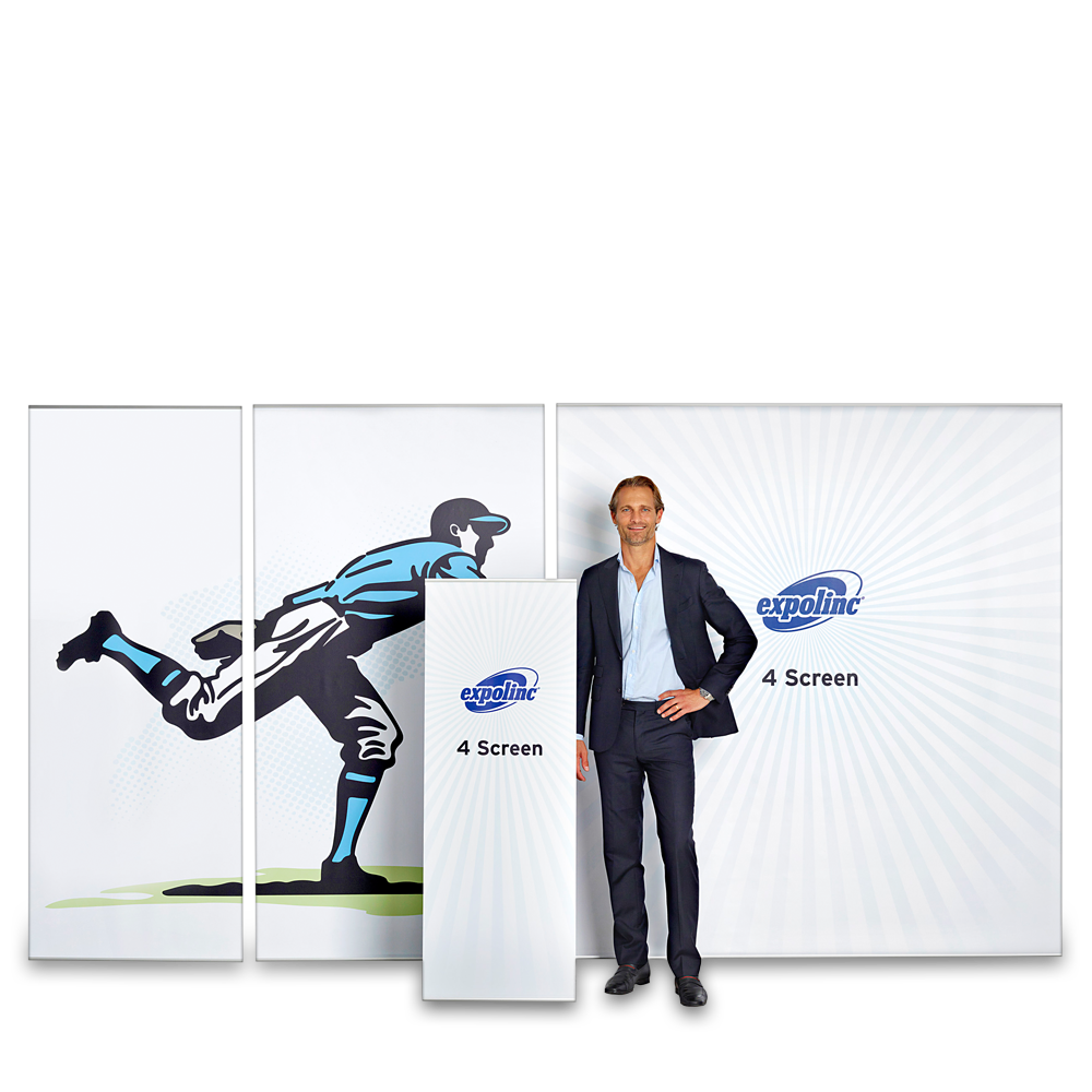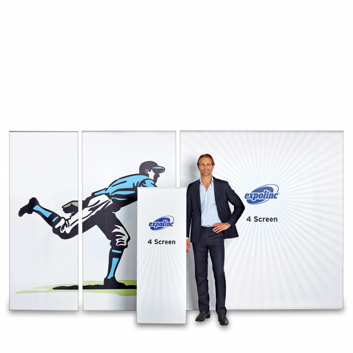Gulvdisplay 4 Screen – Expolinc er et standardprodukt og en klassiker inden for skiltesystemer. Disse skiltestandere kaldes også L-bannere. Ideen med skiltestanderen 4 Screen er et design, hvor selve standeren er skjult, mens billedet fremstår tydeligt. Man får et udstillingsprodukt i høj kvalitet til en god pris, der er velegnet til messer, kampagner og kunder i detailhandlen.