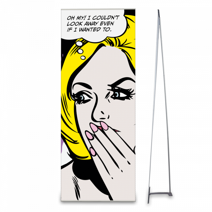 Displaystanderen fås i mange forskellige størrelser i en bredde fra 55 til 200 cm. Højden er fra 148 til 215 cm. Disse gulvstandere kaldes ofte for L-bannere. Det skyldes, at det trykte display står vinkelret i forhold til holderen på gulvet, og dermed ligner et L. Udstillingsstanderen placeres på gulvet og er velegnet til brug i butikker, på messer, i butikscentre samt på stadioner og andre offentlige steder. Budskabet vises i form af trykte bannere, hvor man kan bruge tekst, logoer og billeder i alle farver. Banneret kan naturligvis også fås i sort/hvid, hvis det passer til virksomhedens profil. Vi mener, at det vigtigste i forbindelse med trykning af bannere til udstillinger er en ensartet stil med et enkelt design. Derudover er det også en god idé at bruge en så kort tekst som mulig, så man når ud med sit budskab.