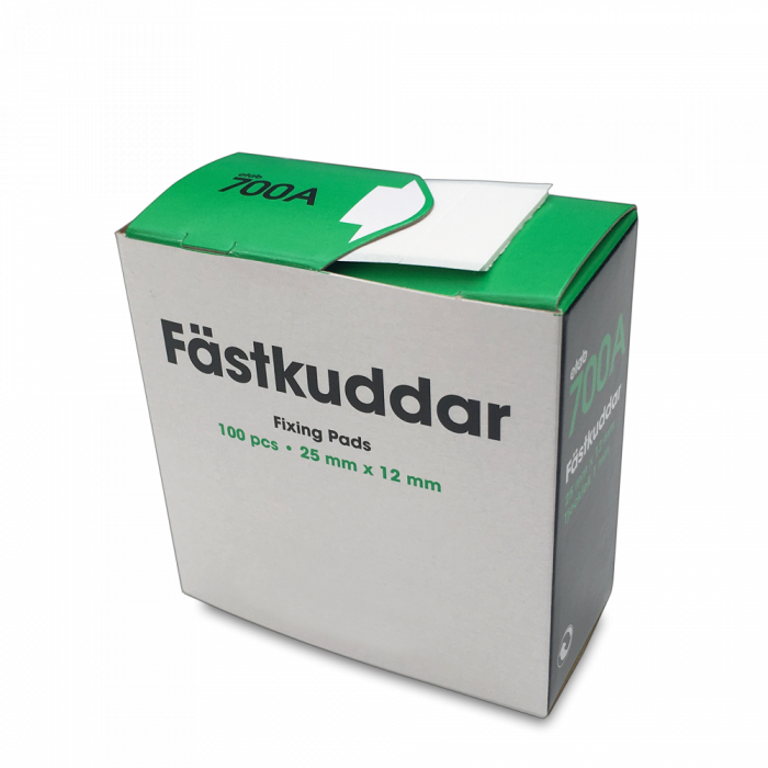 Klæbepuder til skilte er nemme at bestille her. Æsken indeholder 100 stk. selvklæbende klæbepuder med målene 25 x 12 mm.