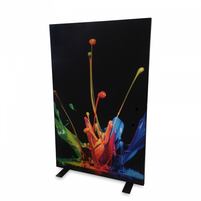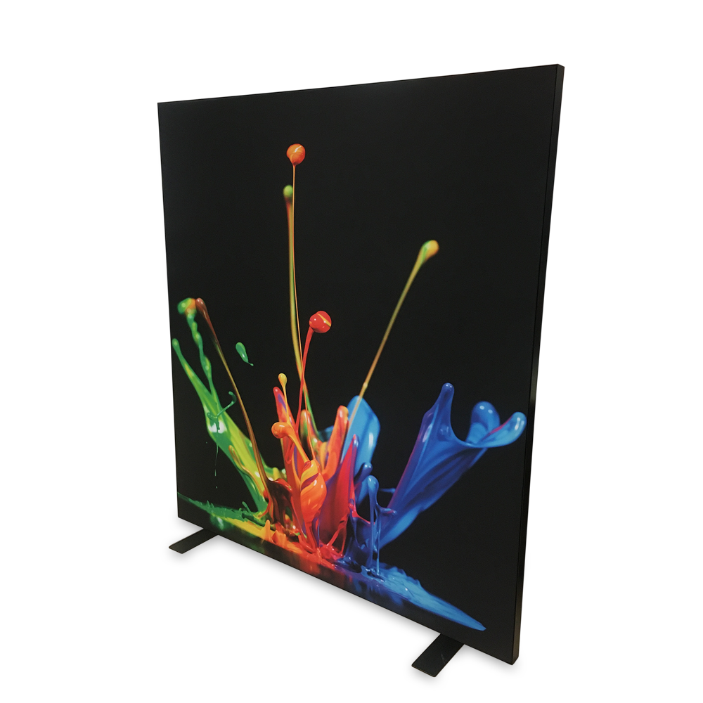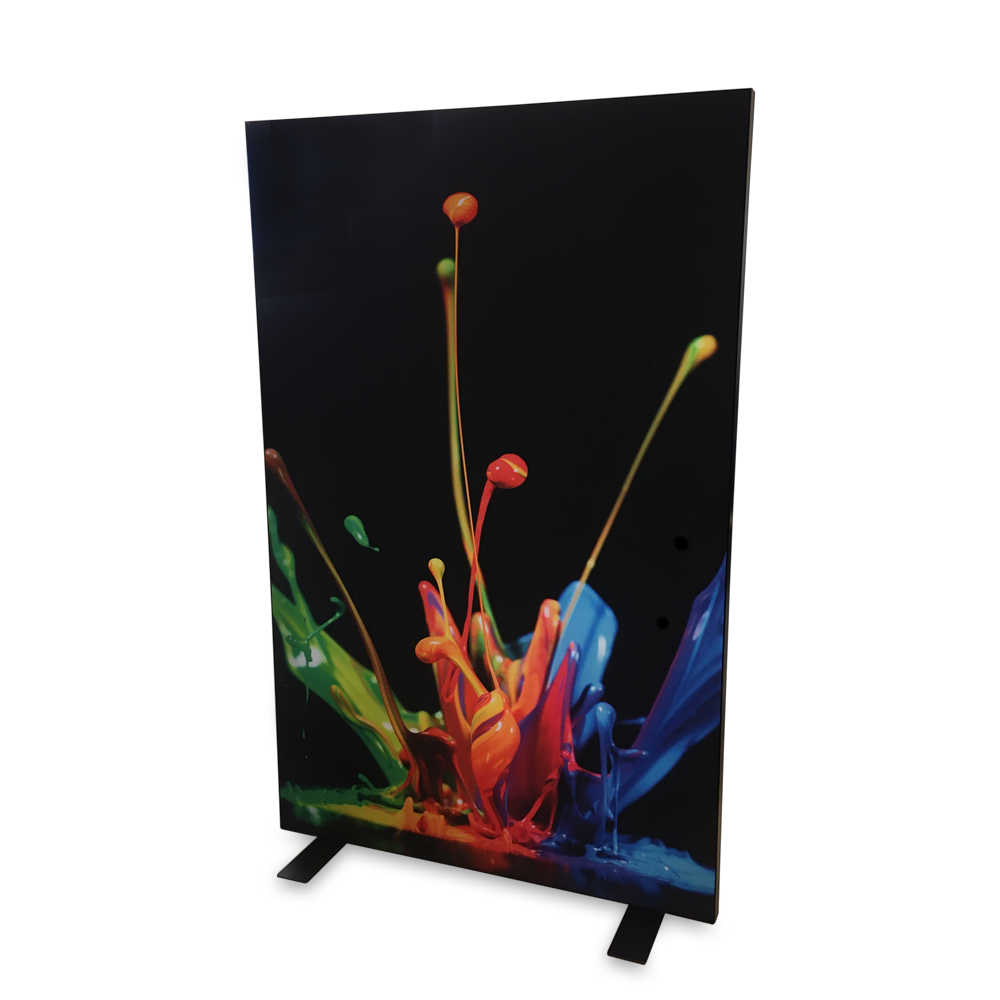 Lyddæmpende skærmvæg i stof med trykte motiver i farve. Akustikskærme fungerer som moderne lydabsorbenter og dæmper lydniveauet på kontorer og i andre lokaler. Selve aluminiumsrammen er 44 mm tyk, og forsidens kanter er kun 2 mm, så motivet fremhæves. Vælg størrelse og farve nedenfor. Hvis I har brug for andre størrelser, er I velkomne til at kontakte os.