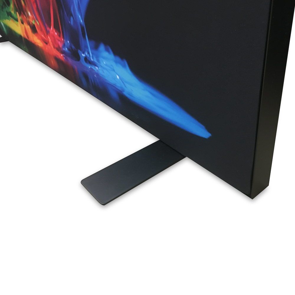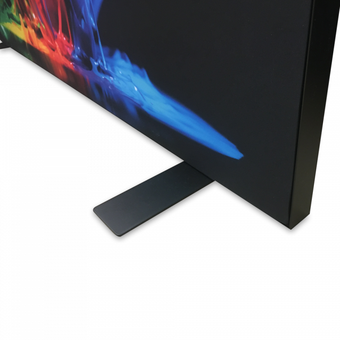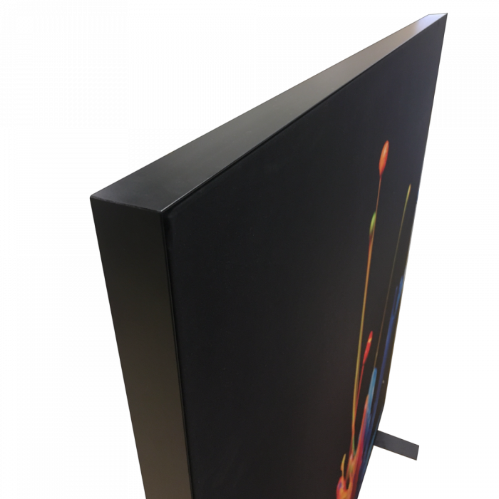 Lydabsorberende skærmvæg, eget trykt motiv i stof kaldes også lydabsorberende vægge. Disse lydabsorbenter fungerer godt på kontorer. Det lydabsorberende stof med sit eget tryk på fastgøres let til aluminiumsrammen med en gummistrimmel, der passer i en rille. Selve rammen er frem for alt stærk og holdbar, og den er 44 mm tyk. Forfra er rammekanten kun 2 mm tyk, og det lydabsorberende bord med print på har et moderne look.