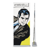 Hvis I har brug for hjælp til at skifte roll-up-paneler i kassetten, kan det løses. Hvis man er lidt fingernem, kan man selv gøre det. Man trækker bannerpanelet ud af roll-up-standeren og låser oprulningen fast med en stift, der medfølger. Derefter fjerner man tapen og sætter det nye panel i.