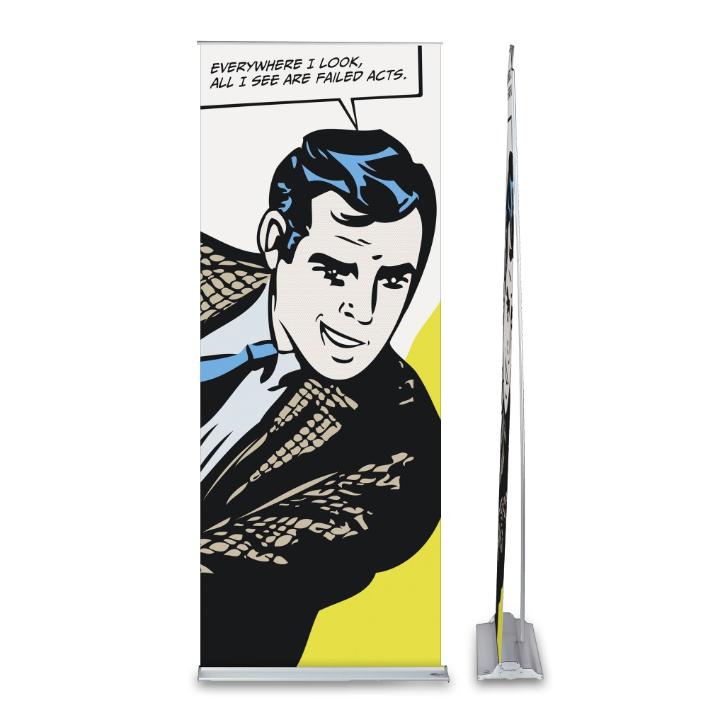 Vi har alle mål på roll-up-bannere, og roll-up-panelerne passer til standerne. Roll-up-bannere bruges til udstillinger og i butikker. Systemet med udskiftning af billedet i roll-up-banneret fungerer enkelt, da man ganske enkelt bare skal trække et bannerpanel op med et billede eller et budskab på. Derefter fastgør man billedpanelet i toppen af en stang, der passer i roll-up-foden eller roll-up-kassetten. Det tager kun et halvt minut at sætte et roll-up-banner op.Kontakt os, hvis I er usikre på, hvilken roll-up-stander I har. Vi kender alle mærker såsom Expolinc, Expand, Spennare og Markbric samt flere andre billige roll-up-mærker.