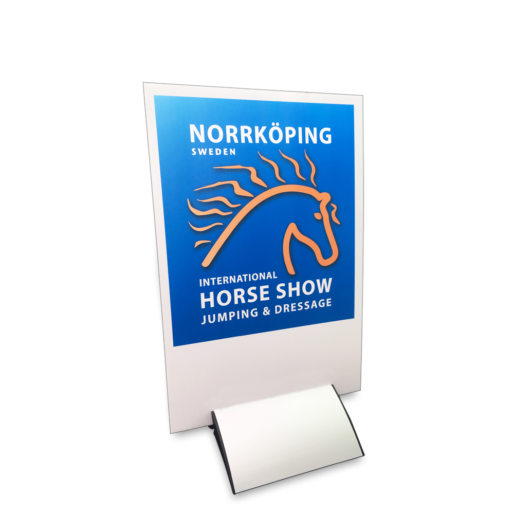 Skiltefod Pressto er en skilteholder til plader og plantrykte budskaber.Passer til hårde plader i tykkelser på mellem 1-25 mm. Det trykte billede klemmes ganske enkelt ned i den flotte skilteholder. Fås i flere bredder og har sorte sider.