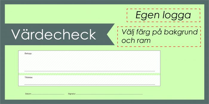 Stor gevinstcheck/præmiecheck med eget budskab eller billedmotiv. Skiltene er trykt på karton med en tykkelse på 800 g og bruges ved uddeling af gevinster og udmærkelser samt stipendier.Vælg størrelse og antal nedenfor.