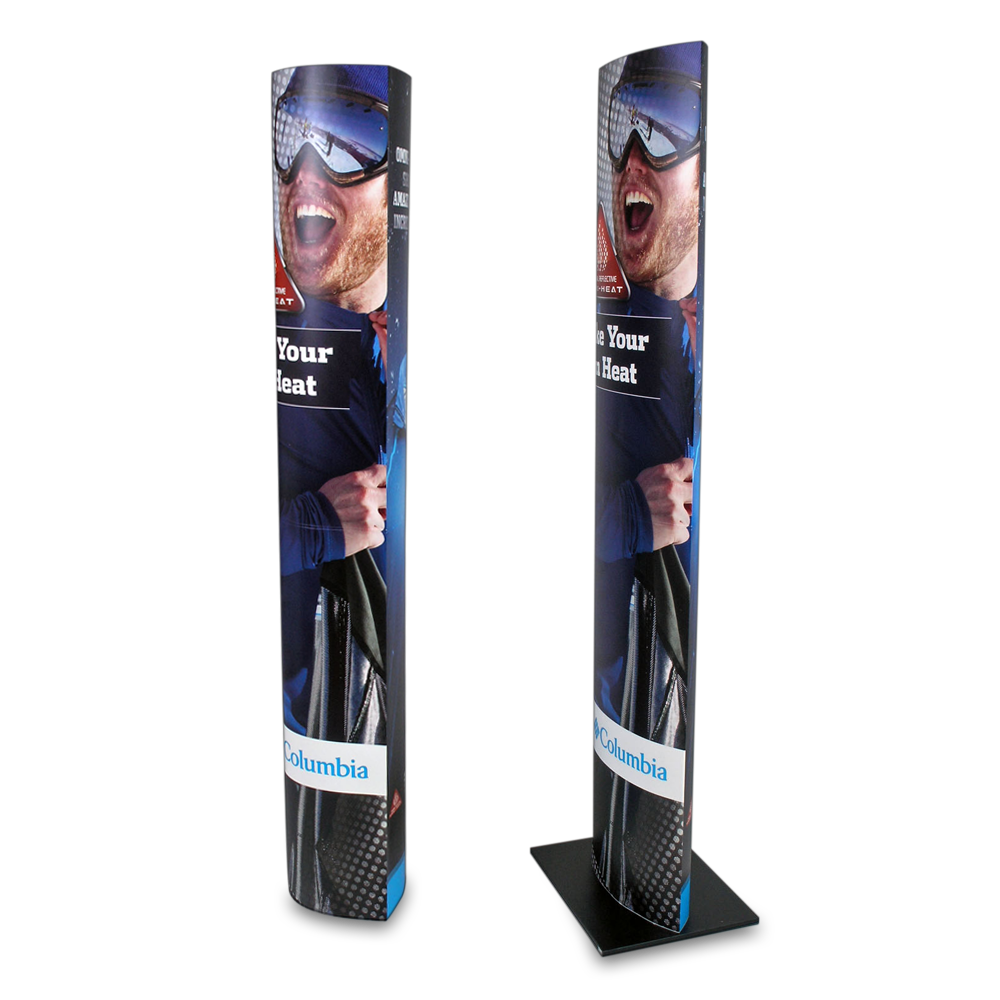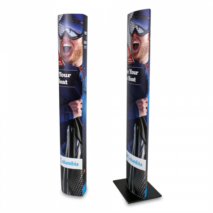 2Stand elips med fot Golvställ är för det första dubbelsidigt! Tryckt kartong är ett billigt displayalternativ som ellips. Stället väger bara 4 kg och är enkelt att hantera. Bottenplattan tillverkas i MDF och finns i vitt eller svart. 2 Stand displayen är 50cm bred och 160cm eller 180cm hög. Man kan beställa nya bilder till golvstället som passar bra till kampanjer som butiksreklam. Formen på de tryckta pelarna är följaktligen som en oval och är lätt att placera. En annan fördel med denna display är att de är lätta att flytta på och placera där de passar bäst. Golvdisplayerna används i många sammanhang bland annat i köpcentrum, i affärer, hos bilhandlare på idrottsarenor. Det är inte bara reklambudskap utan det kan även vara information om event så som konserter och föreställningar. Paketet blir endast 90x52x4cm.