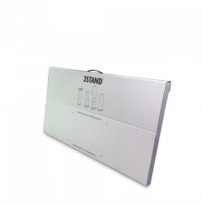 2Stand elips med fot Golvställ är ett billigt golvsystem i kartong med dubbelsidigt tryck ellips. Mycket enkelt att byta budskap, 50x160cm eller 50x180cm. Bottenplatta i MDF med svart laminat och paketet blir endast 90x52x4cm.