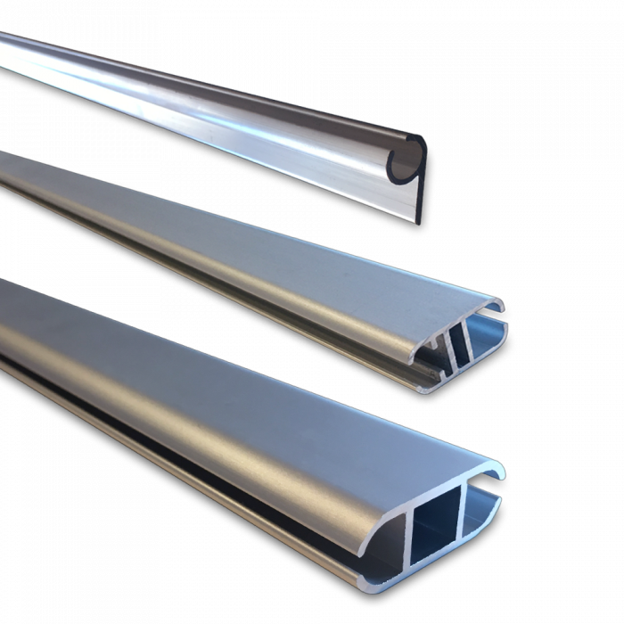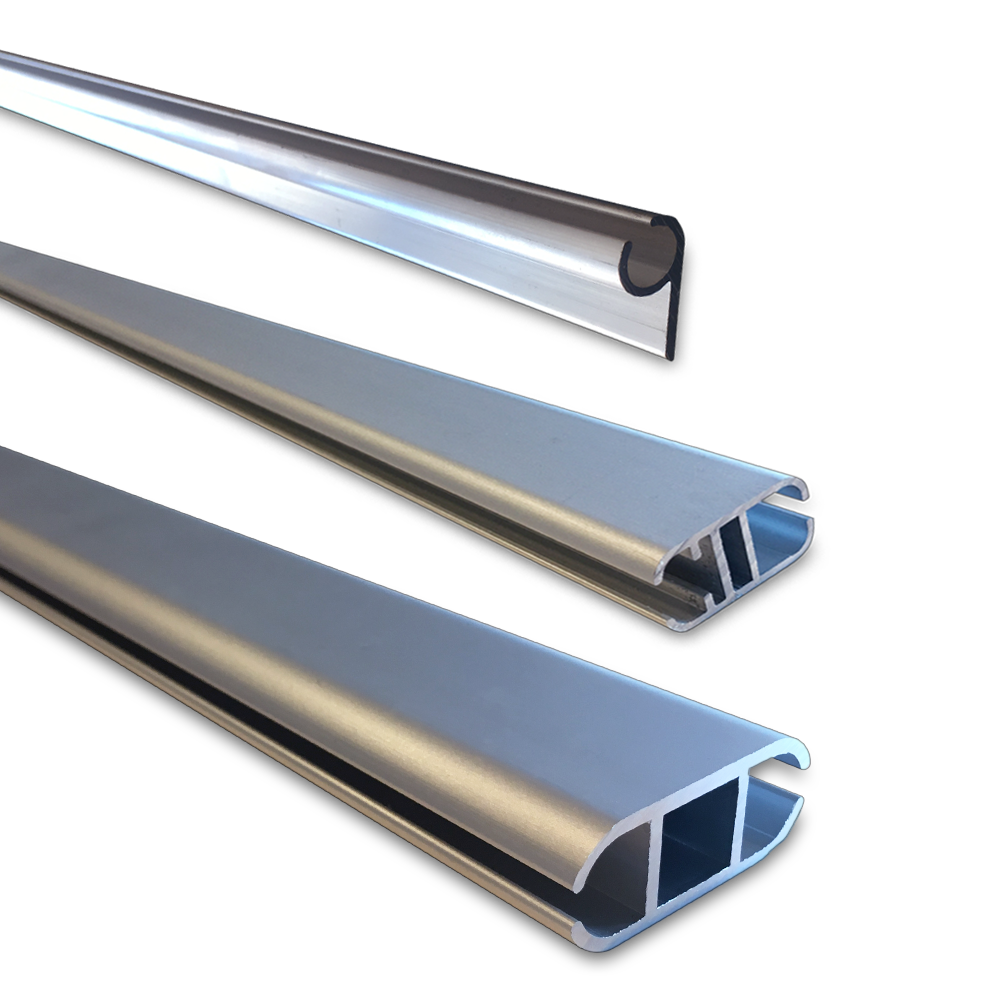 Alla våra Aluminiumprofil till banderoll med kederlist finns i lager med längder upp till 6 meter.