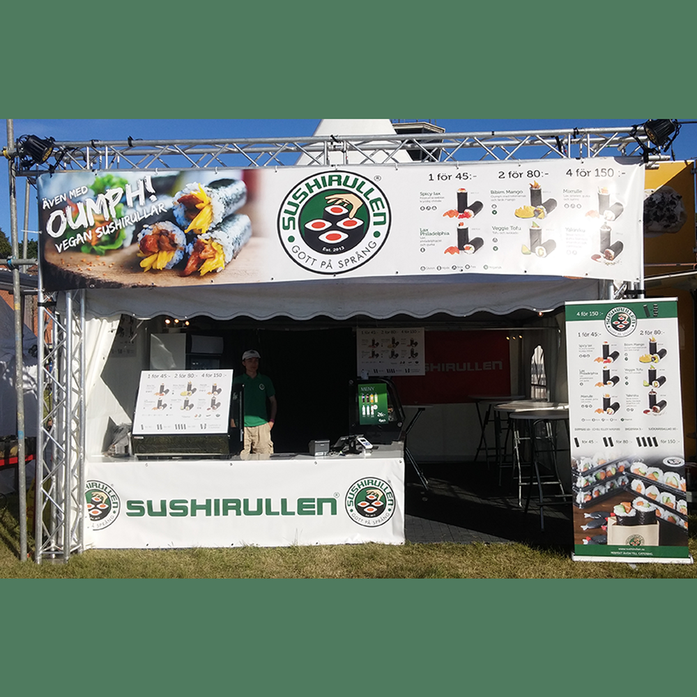 Beställ banderoll i egen storlek! Först och främst, vepan som är 450 gram tjock av högsta kvalité och håller bra i alla väder! Välj vilket format Ni vill och beställ med snabb leverans i jämförelse med många andra företag. Stora banderoller upp till fem meter breda fungerar bra. Fördelen med att beställa banderoll i egen storlek är att man anpassar budskapet så man får en perfekt reklambanderoll.