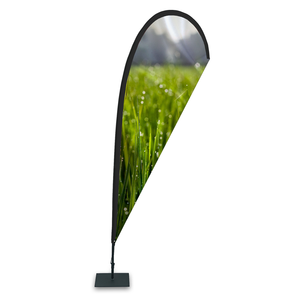 Billig beachflagga formad som en droppe! Droppen levereras i svart nylonväska och finns i tre storlekar. Glöm inte köpa en fästanordning!