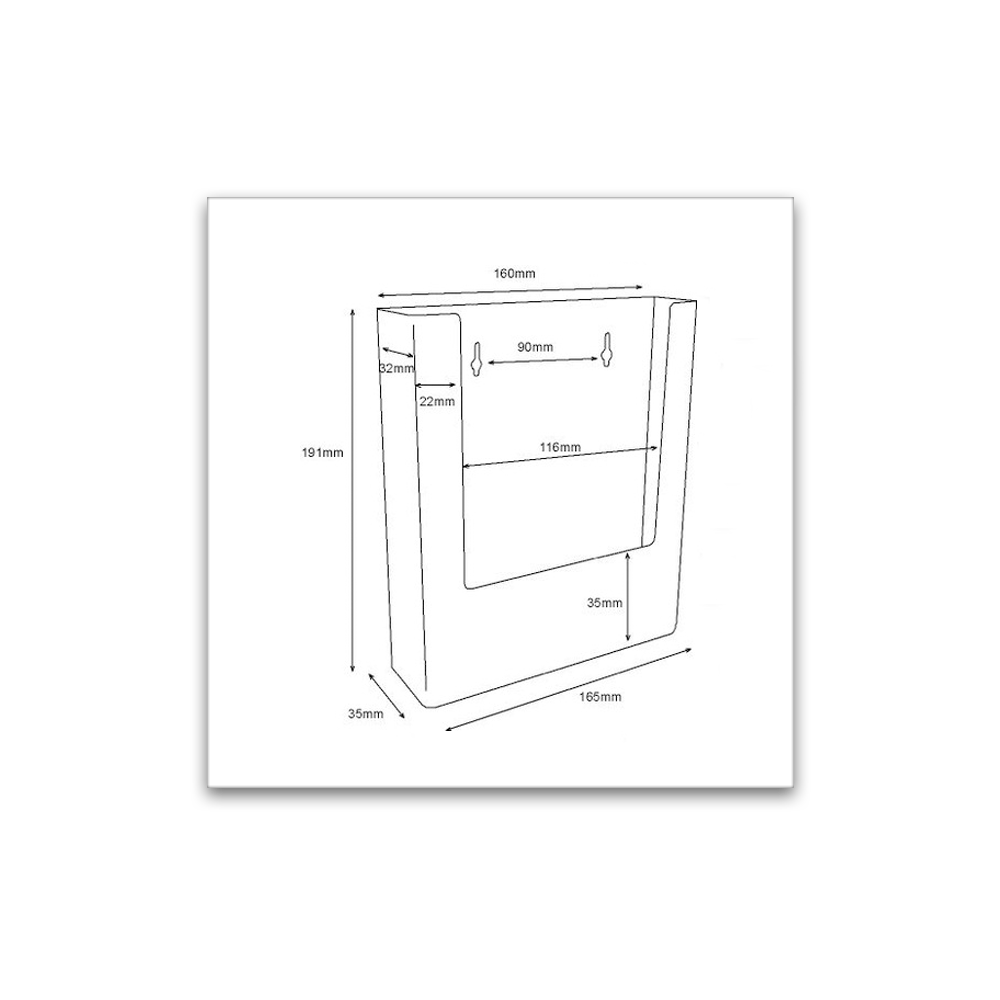 Broschyrställ vägg till foldrar och broschyrer för optimal visning. Formgjuten glasklar polystyren plast med runda mjuka kanter som är snällt mot fingrarna. Snygg och hållbara design.