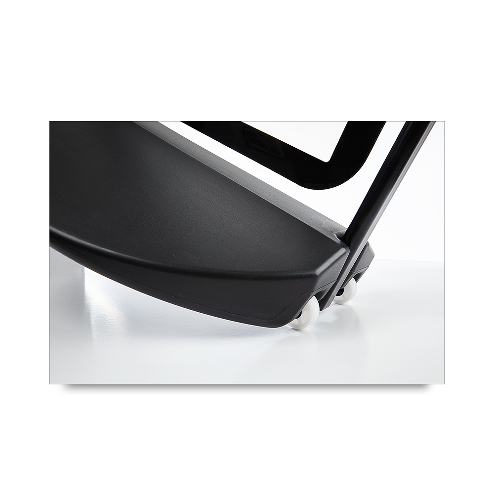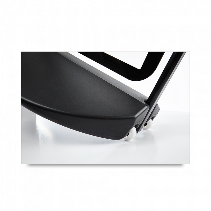 Det finns två smarta saker med denna gatupratare utomhus Swing. Det ena är att foten har inbyggda hjul som gör att man kan dra in och ut gatutalaren väldigt enkelt. Det andra är att själva budskapet i form av en poster eller affisch hänger och följer med som en pendel om det blåser. På så sett välter inte gatustället och det rör på sig en del vilket fångar uppmärksamheten bra.