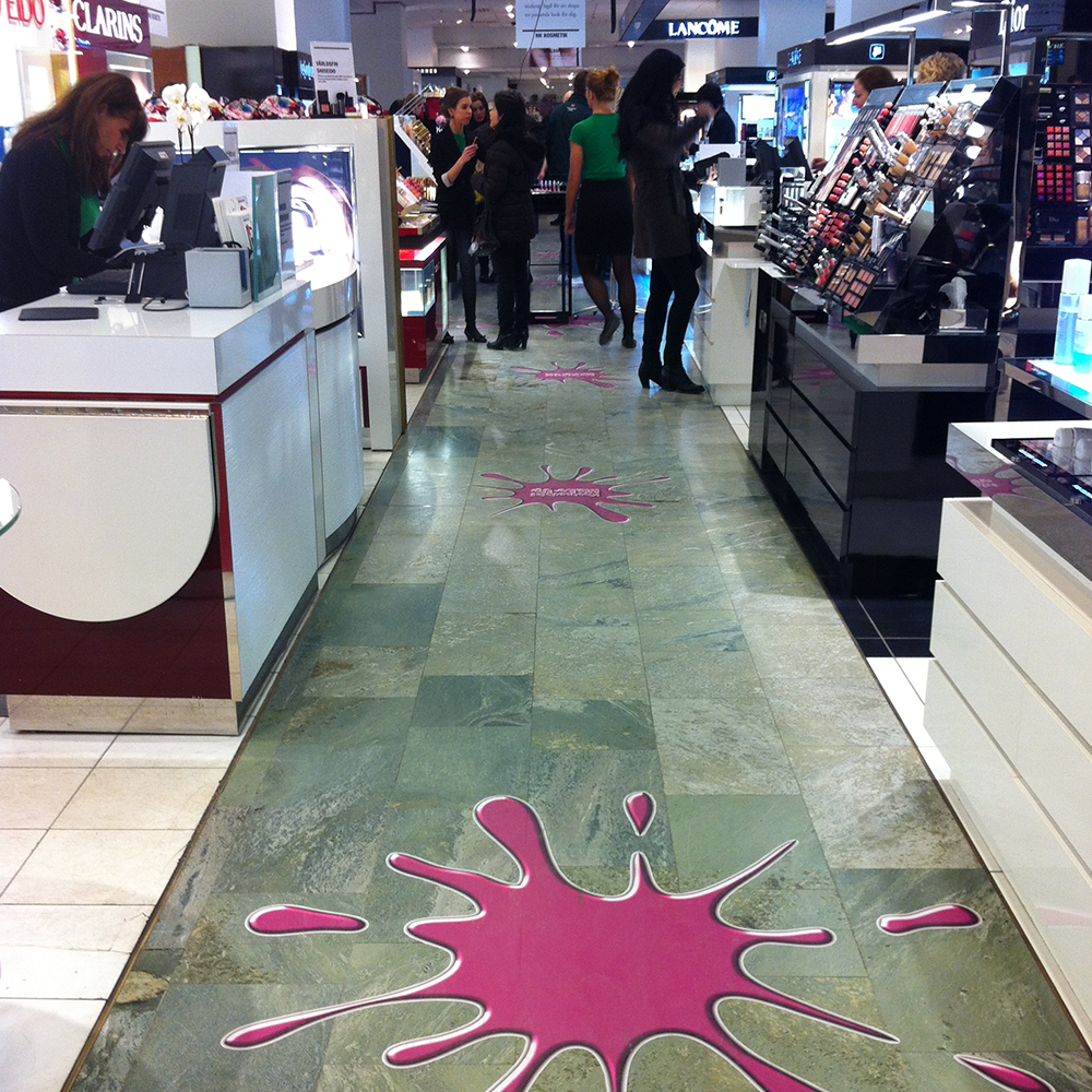 Golvdekor och golvreklam produceras med miljövänlig färg i vårt tryckeri. Vi laminerar alla golvdekaler med ett kraftigt halkskydd som även ger ett skydd mot slitage. Ytan blir matt då halklaminatet har ett strukturmönster som gör att dekalerna inte blir hala. Det fungerar bra att använda i butiker, entréer, mässor och köpcentrum för att visa budskap och erbjudanden. Det går att köpa alla olika storlekar från små konturskurna i figurer och cirklar till gigantiskt stora som skall täcka hela golv med texter och fotobilder. Vi har en stor erfarenhet av klisterdekaler och vet vad som skall användas.