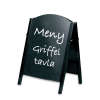 Marknadens bästa griffeltavla som trottoarpratare! Perfekt till menyer och dagens erbjudande. Pulverlackerad stomme för lång hållbarhet. Skivorna är dessutom vändbara. Välj mellan 50x70cm eller 70x100cm.