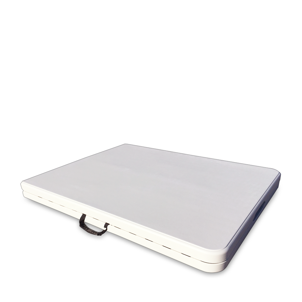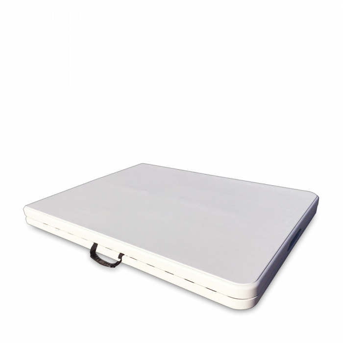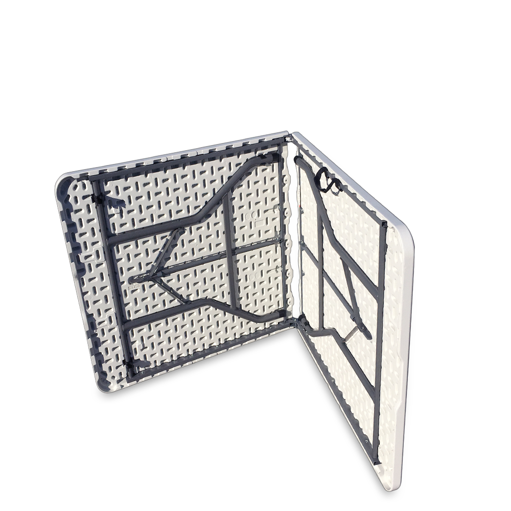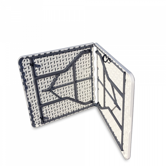 Bordsskivan är tillverkad i hög-densitet polyeten med ben av starka stålrör. Det hopfällbara bordet viks platt för enkel förvaring och transport. Passar bra på mässa, event, lanseringar av produkter i butik och fester. Överallt där du är i behov av ett kraftigt och flexibelt samt vikbart fällbord.