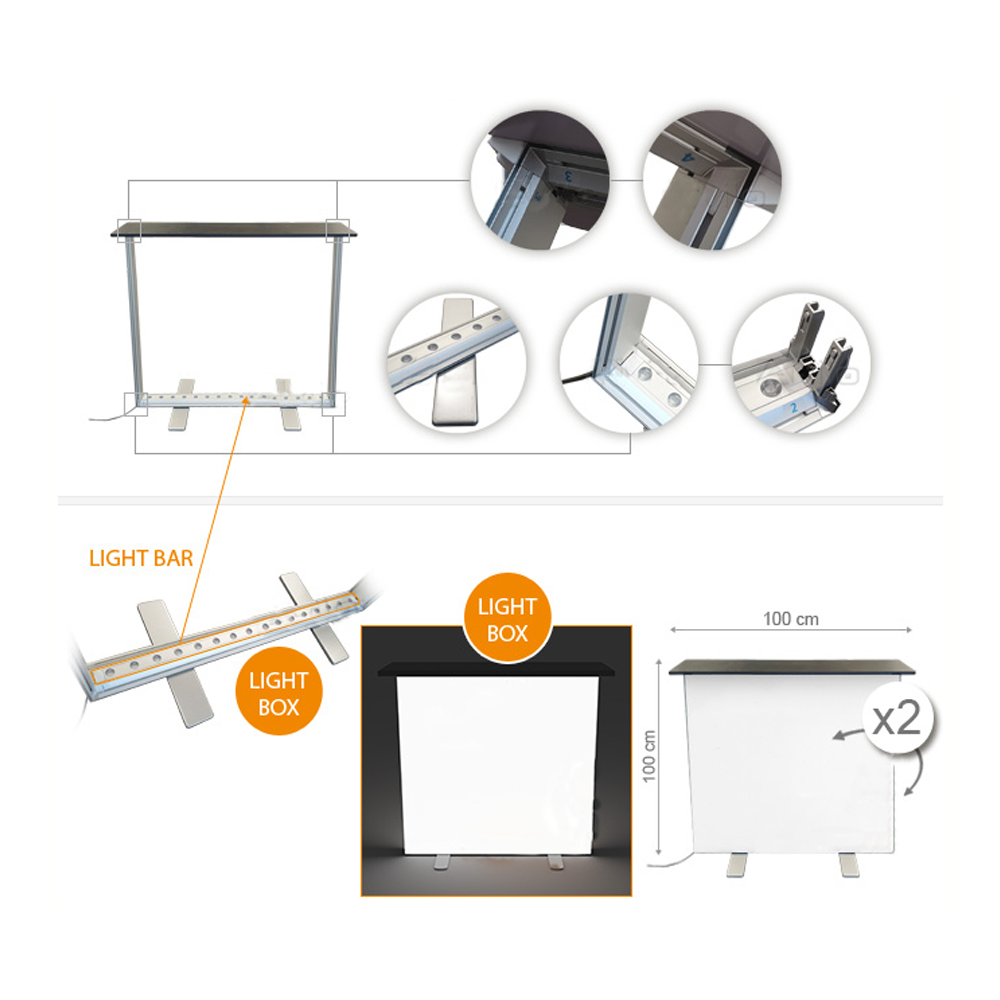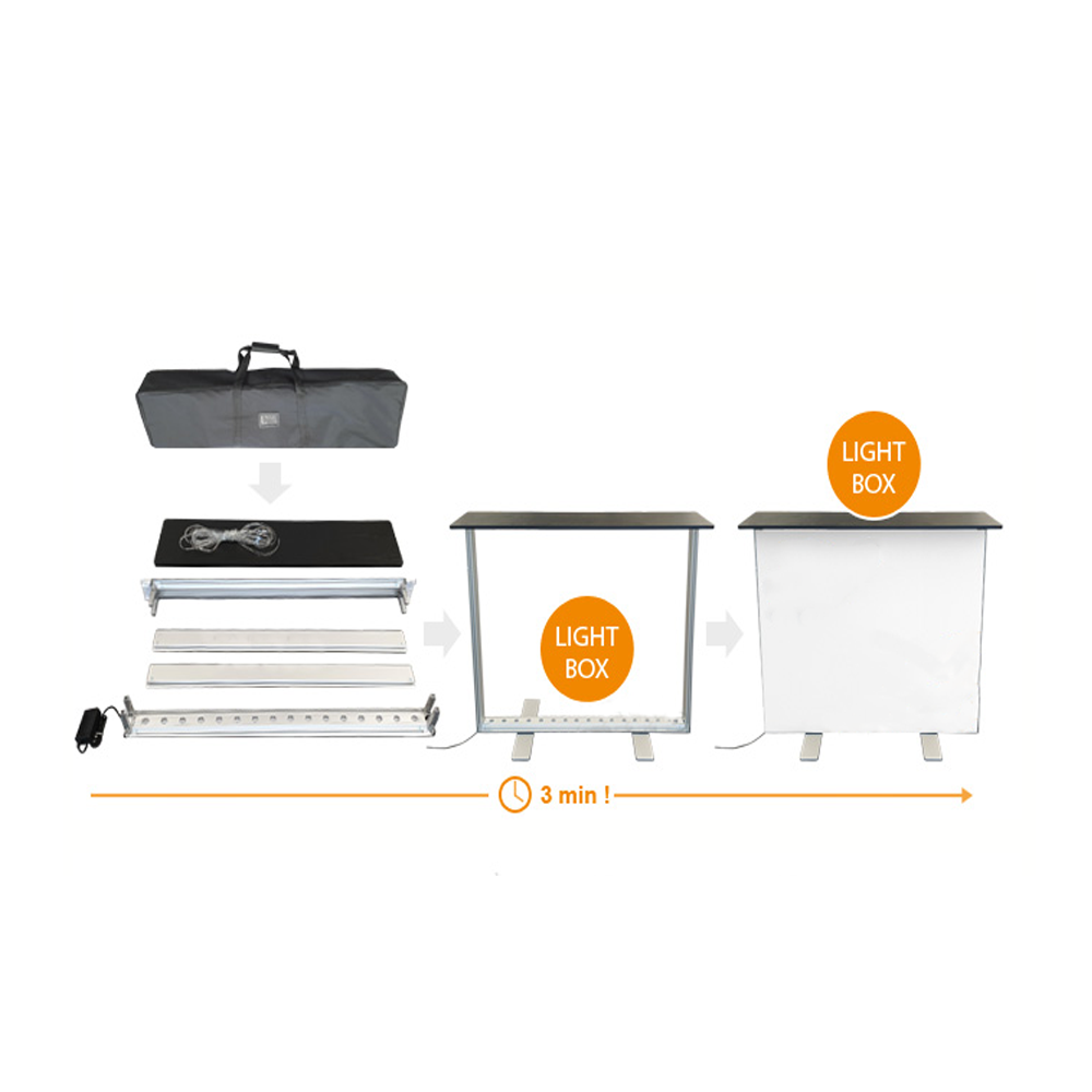 • Verktygsfri uppbyggnad – sätt upp på nolltid – enkel montering utan verktyg, Ljuslåda LED Mässbord är perfekt för snabbt tempo på mässgolvet .