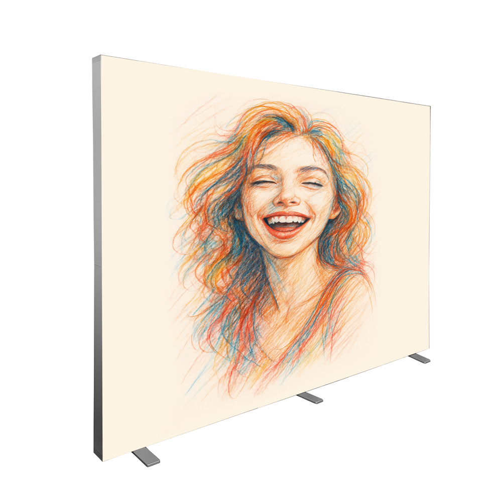 Med hjälp av den smarta textilen sprids ljuset jämnt över hela ytan vilket ger ett imponerande och professionellt intryck. Perfekt för mässor, butiksinredning, kampanjer, utställningar eller som informationsskylt i publika miljöer.