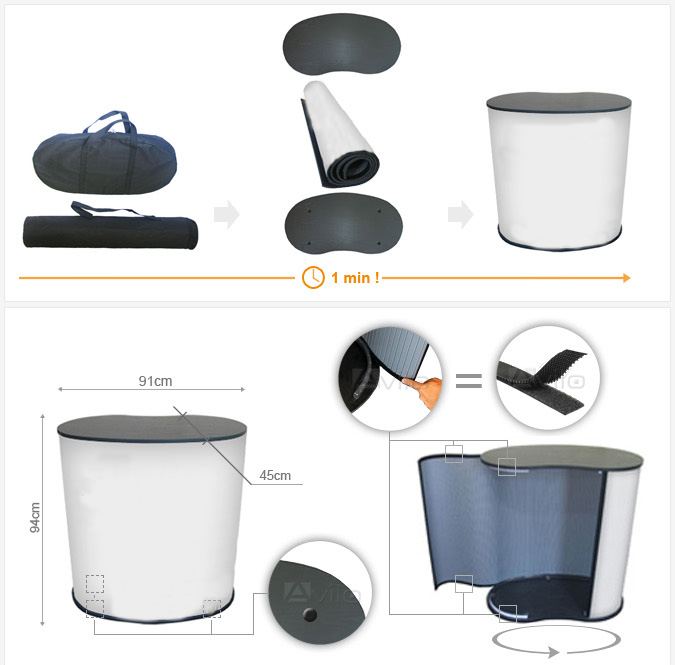 Mässbord Budget köper Ni till lågt pris inkl. bildsvep som ingår i priset! Podiet är 91cm brett 45cm djupt samt 91cm högt. Komplett i väska med podium, hyllplan, toppskiva.