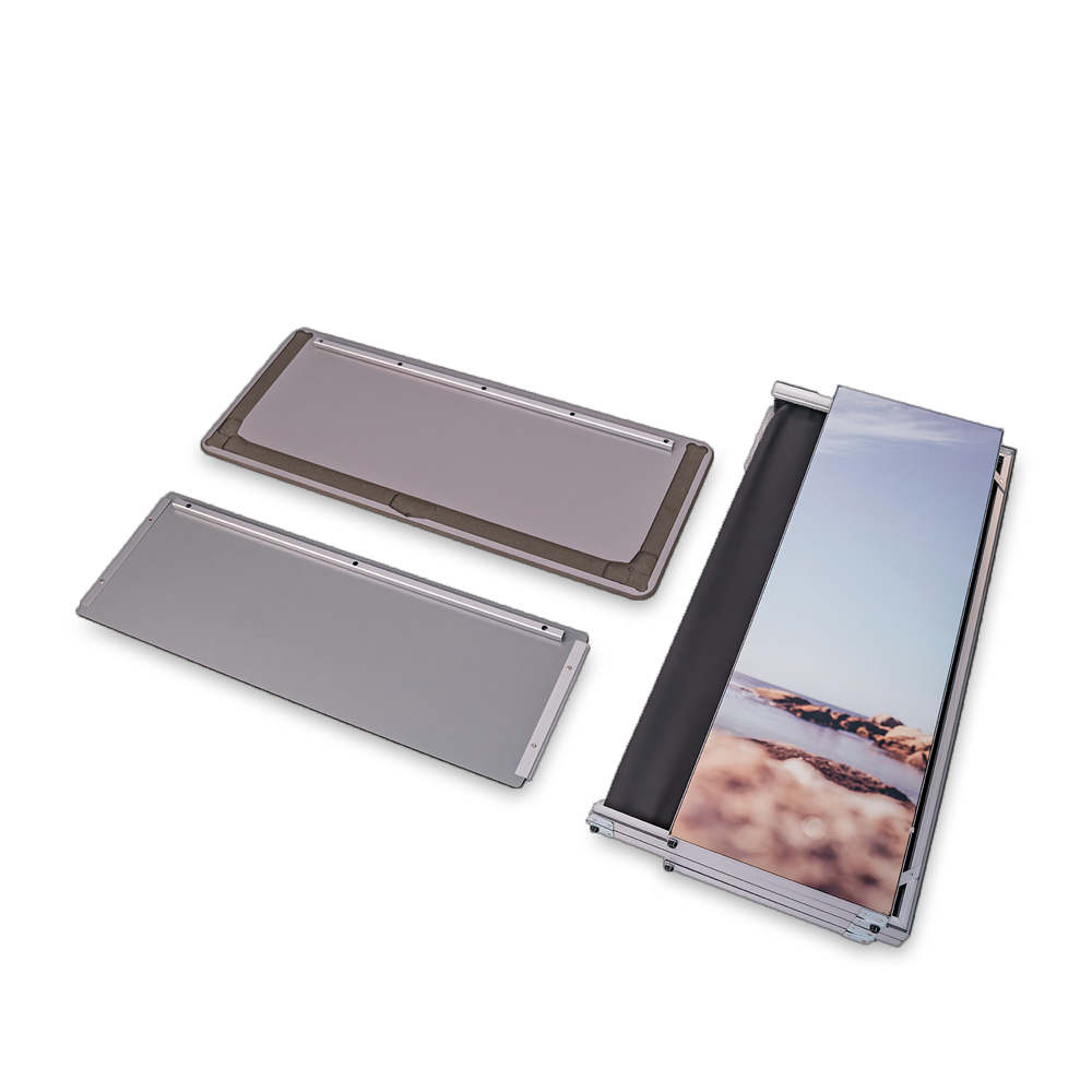 Originalen bör vara en logga eller en kort text slogan. Sedan passar färgvalet naturligtvis att hålla sig till företagets, produktens eller föreningens färgprofil. Mässbord Fold Out Counter är baserad på samma konstruktion som Expolincs Frame system, med tygbilder med gummilister vsom passar ramarna. Den robusta konstruktionen spänner textilen till en perfekt, skrynkelfri presentation av ditt budskap. Det är en stabil produkt med invändig hylla för förvaring av marknadsmaterial. Disken i tyg fäller man upp och packa ner enkelt och passar speciellt till andra tygställ. Se alla våra andra modeller och storlekar på mässbord och diskar.