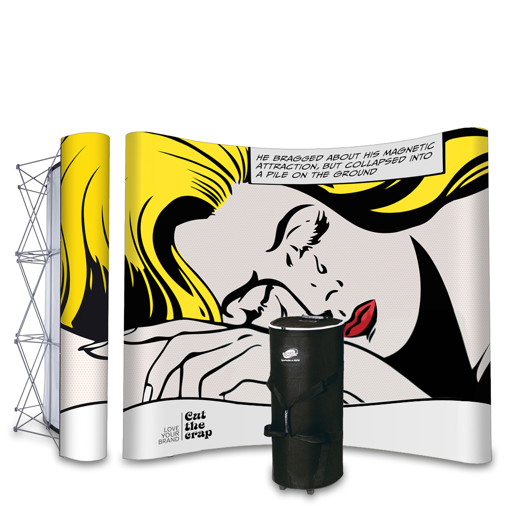 Pop Up Travel Case Svängd är en komplett böjd mässmonter i högsta kvalité! Alla bilder bilder och belysning ingår. Våderna sätts enkelt upp med magnet. Transport boxen på hjul är ett bra alternativ om man inte behöver ett bord. Mässväggen Pop Up Magnetic Travel från Expolinc finns i tre storlekar.