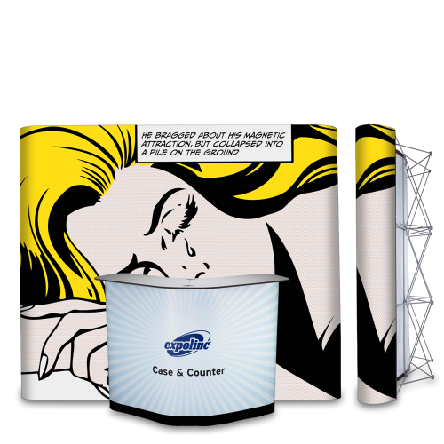 Pop Up Travel Case Svängd är en komplett böjd mässmonter i högsta kvalité! Alla bilder bilder och belysning ingår. Våderna sätts enkelt upp med magnet. Transport boxen på hjul är ett bra alternativ om man inte behöver ett bord. Mässväggen Pop Up Magnetic Travel från Expolinc finns i tre storlekar.