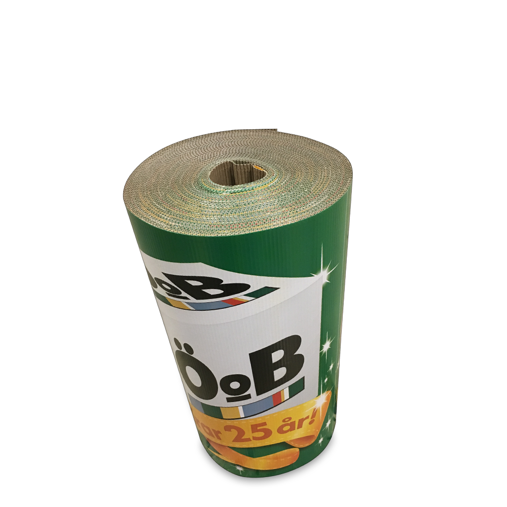 Rullwell – Pallsvep med tryck beställer ni framför allt enkelt av Gdirekt. Rullwell är helt enkelt wellpapp på rulle. Vi printar med fördel dessa wellpappsrullar med miljövänlig färg. Härdningen sker med UV ljus då det ger en fantastisk bra hållbarhet. Wellpappen på rulle är perfekt till pallsvep med tryckta budskap, erbjudanden och extrapriser.