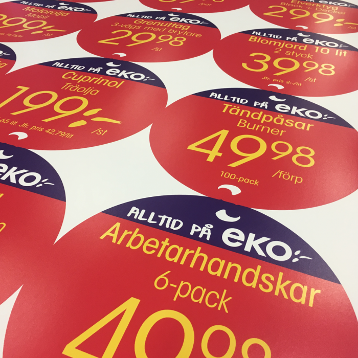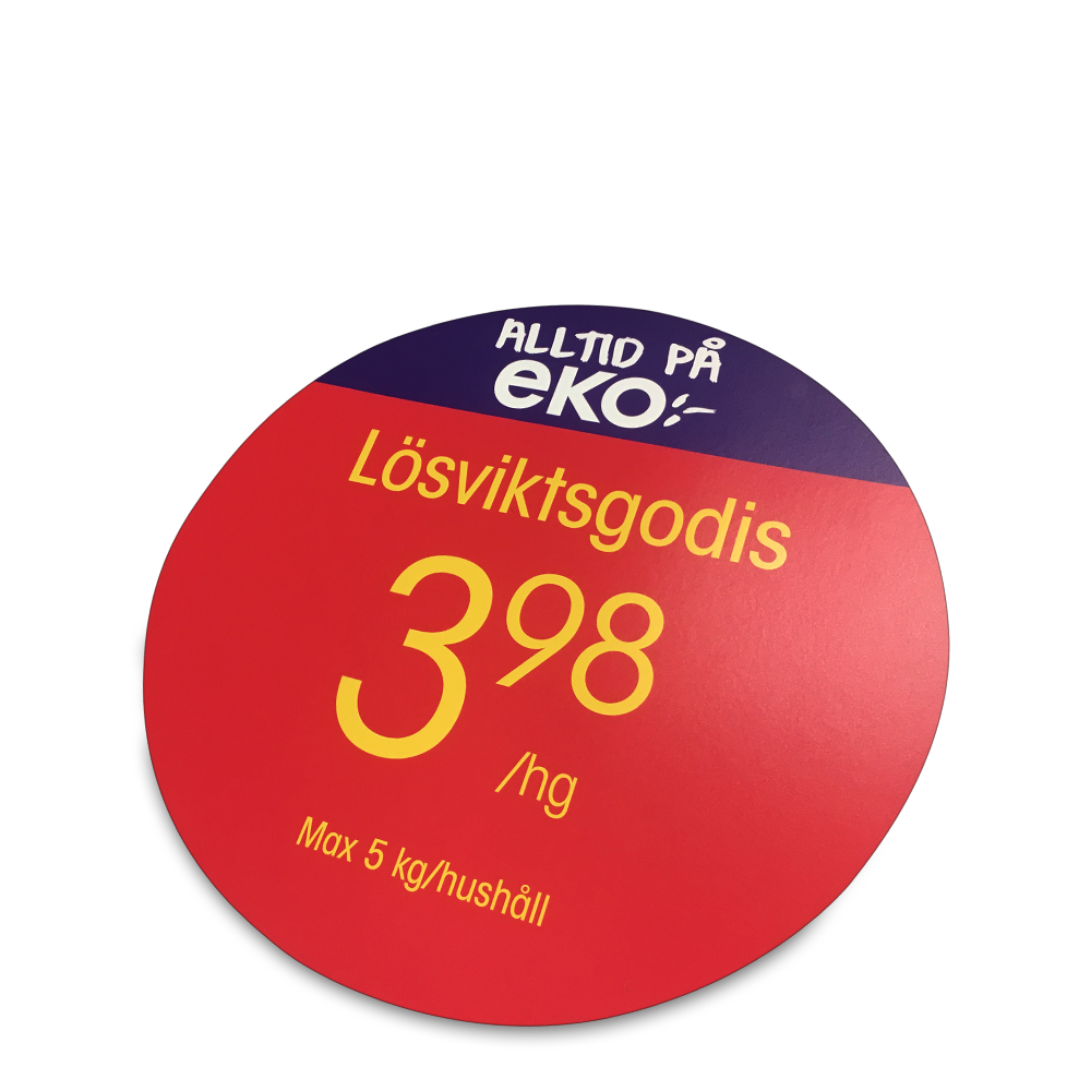 Rund kartong displayskylt till reklamskylt, prisskylt och reaskylt. Beställ med hål och häng dem som elips rondeller med jetsnabb. Butiksskylt till rätt pris. Dessa tryckt dubbelsidigt. Behöver Ni andra storlekar och antal så mailar Ni bara på info@gdirekt.se