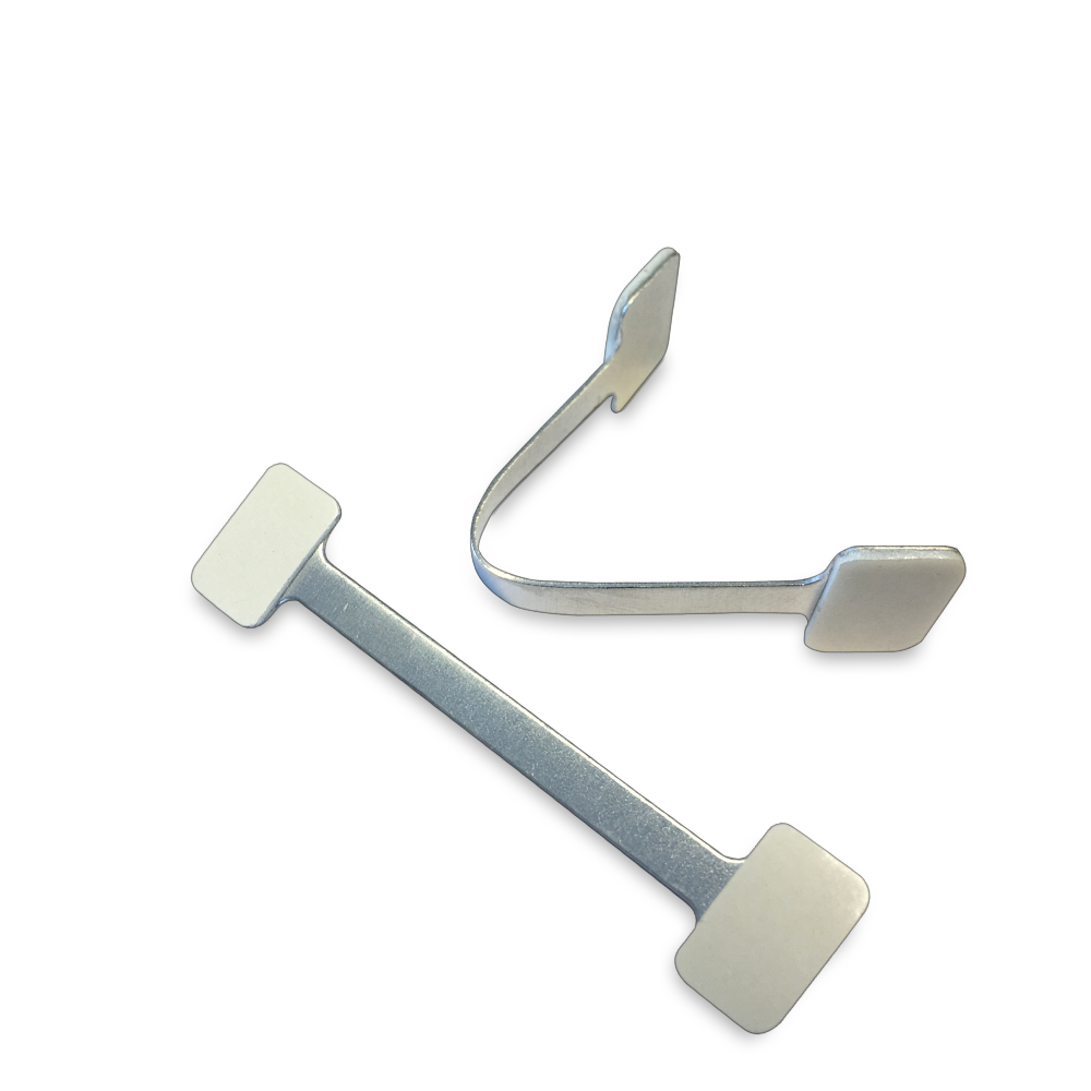 Skylthållare Twinstick i aluminium 75mm långa och med självhäftande tejpkuddar. De håller framför allt upp hyllvipor och hylltalare. De är böjbara och man väljer vilken vinkel budskapet på skyltsen ska ha i butiken eller mässan. Twinstick används främst för att fästa upp små reklamskyltar och displayer i kartong. De är dessutom smarta till butikshyllor som displayhållare, som en flärp med erbjudande och rea i butiker. Man tejpar enkelt dit skylt eller displayhållaren på skylten och sedan på hyllan eller annan butiksinredning, sedan väljer man en bra vinkel så informationen syns bra. Skylthållare Twinstick är ett billigt alternativ.
