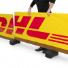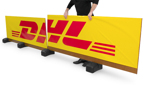 Skylthållaren – Pucken är framför allt smidig och enkel hållare för skyltar. Skylten tryck följaktligen ner i spåret som är gjort för 10mm tjocka skyltar. Pucken går att koppla ihop flera skivor till en lång sarg. Vattenfylld väger den 7 kg och tom 1,3 kg. Det går även bra att fulla skylthållaren med sand. Storleken är 36 x 20 x 17 cm för dessa skylthållare.