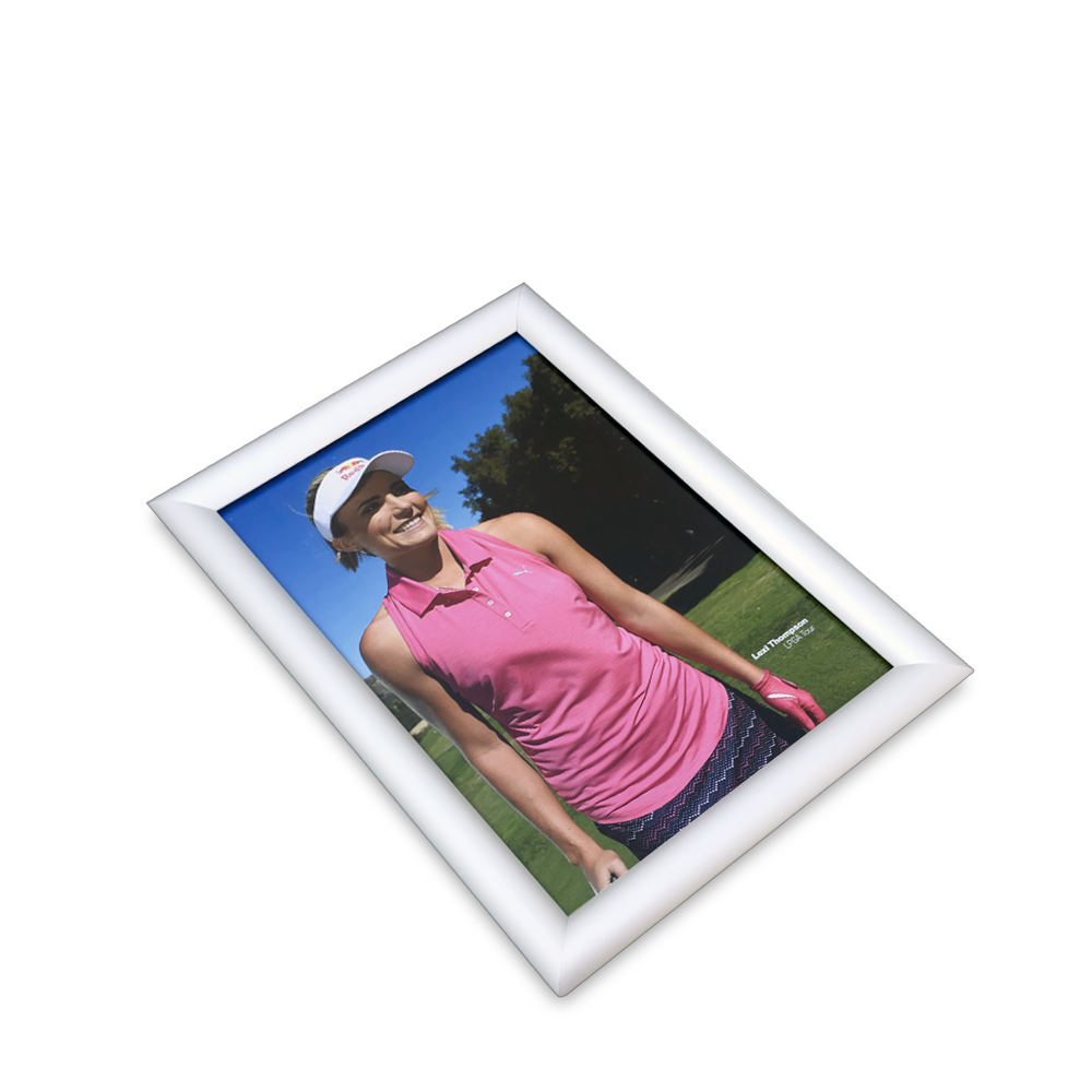 Snäppram aluminium – vit finns i storlekarna A4, A3, 50x70cm och 70x100cm. Ramarna är mycket hållbara och fungerar inomhus och utomhus. Skruv och plugg ingår. Beställ enkelt av Gdirekt!