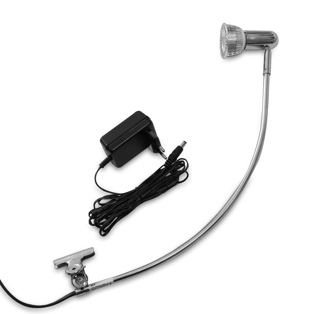 Spotlight belysning Rollup Spennare är armatur till våra Rolluper från Spennare. Själva skyltbelysningen är vinkelbar och man fäster spotlighten med en klämma. Levereras i svart vadderad väska och är enkel att fästa dit. 12 watt LED som drivs med 220v, kontakt och kabel följer med.
