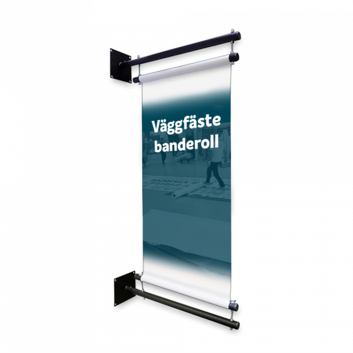 För enkel- eller dubbelsidiga vepor. Enkel montering på rören (diameter 32 mm). Levereras utan banner men går naturligtvis att köpa till. Vi använder alltid en kraftig banderollväv med blockoutskickt till väggfästen banderoll så det inte lyser igenom.