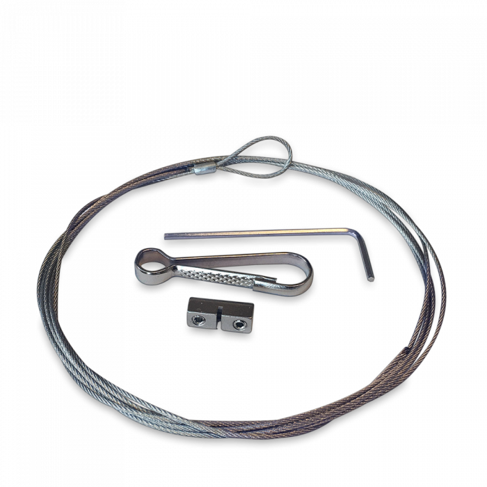 Vajer med lås och krok används framför allt ofta vid montering i tak. Man fäster upp lister, profiler, ramper, vepor, skyltar och banderoll samt ramar. Vajern är 150cm lång inklusive öglan och 1mm tjock. Det dubbla vajerlåset fungerar upp till 3mm tjocka vajrar. Kroken är 40x10mm och sedan ingår det en insexnyckel.