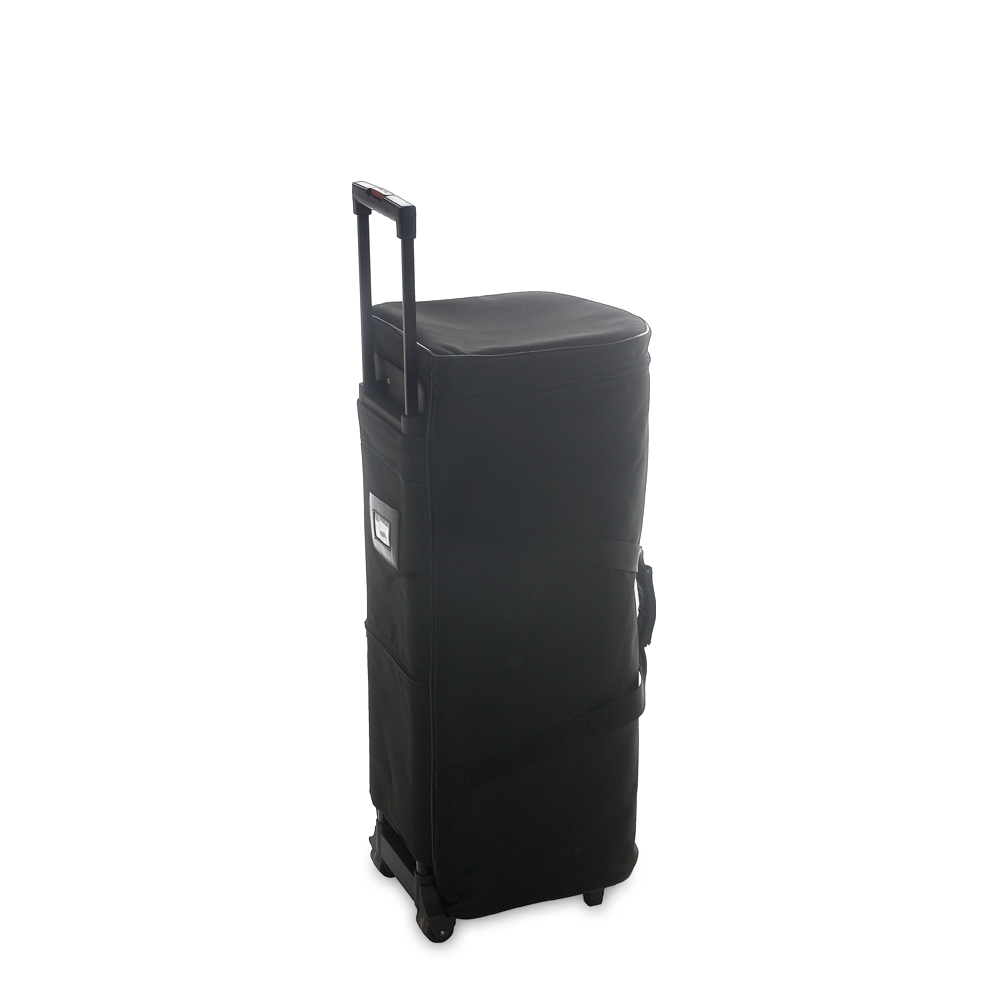 Väska med hjul till Pop up tygvägg. En tålig bag med handtag och hjul som rymmer mässsystemet och tygbilden. Mått 29x29x85cm.