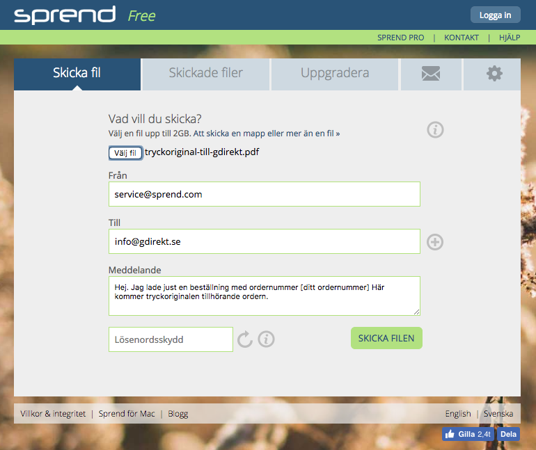 Ladda upp original via Sprend
